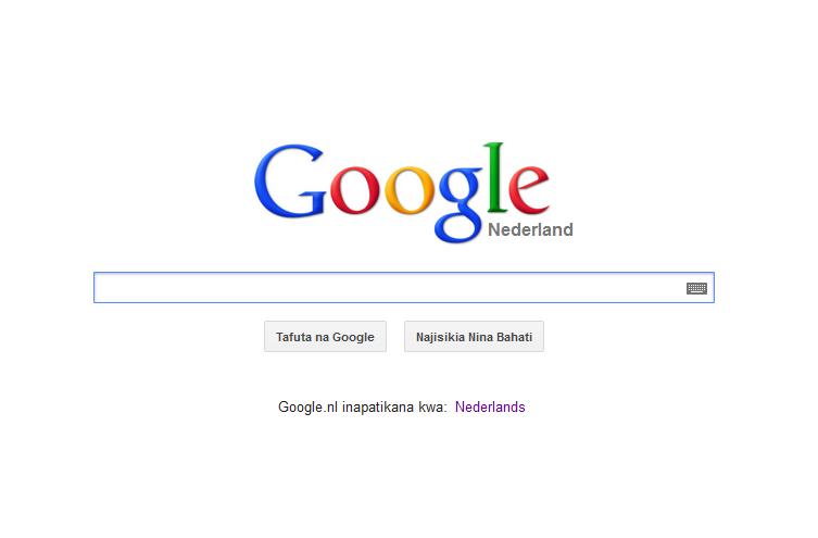 Je kunt nu met Google Nederland in het Swahili zoeken.
