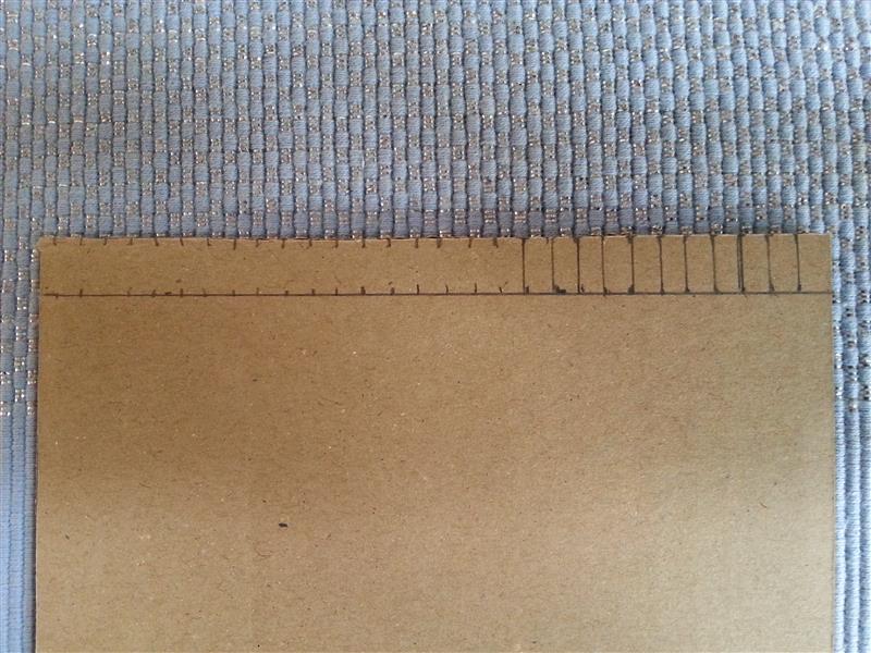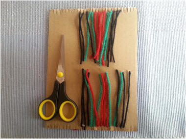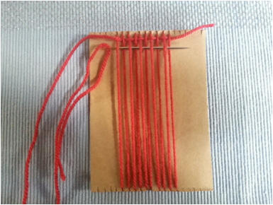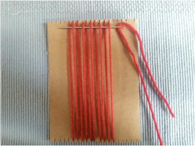 Span de draden op het karton. Let op dat je de draden niet te strak aantrekt, want dan trekt het karton krom.