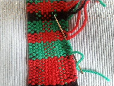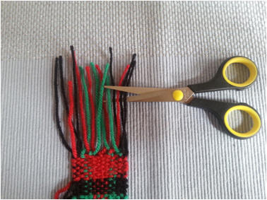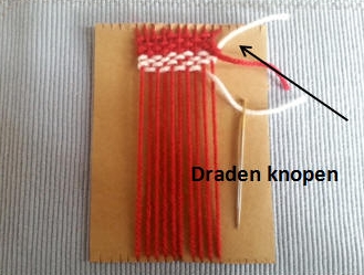 Zorg dat je weefdraad (inslag), niet langer is dan 1 meter.