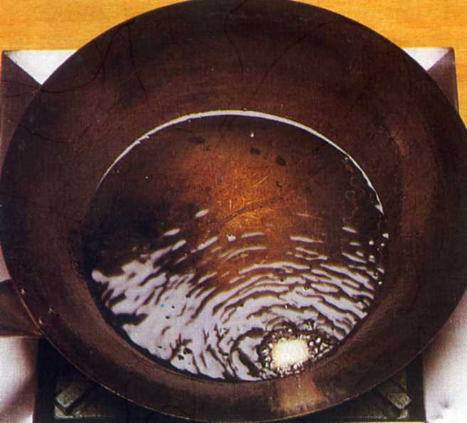 Vul de wok nooit met meer dan tweederde olie, anders bestaat de kans dat de hete olie eroverheen loopt tijdens het frituren of dichtschroeien. Vooral met een gasvlam is dat erg gevaarlijk. Als de portie te groot is om in één keer gefrituurd te worden, doe het dan in twee of drie keer. Dep het gerecht met keukenpapier droog alvorens te frituren.
