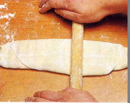 onder het deeg een vel zijdepapier legt, zie je nadat de mie gesneden ís, geen
