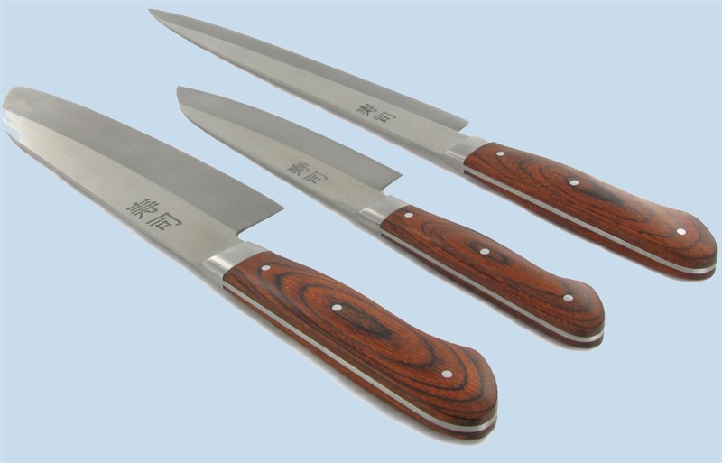 MessenProfessionele messen zijn gemaakt van koolstofstaal. Het lemmet is hard en zeer scherp. Het moet geschikt zijn om er zeer nauwkeurig mee te snijden. Voor thuiskoks voldoen roestvrij stalen messen. Er moet een lang, smal scherp mes bij zijn, om de vis te snijden. Bewaar de messen in een messenblok. |