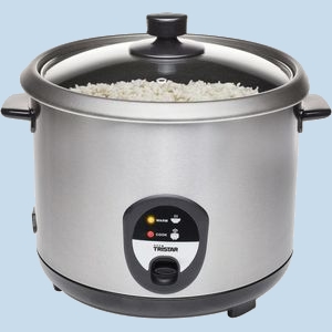 RijstkokerIn de rijstkoker wordt de rijst perfect gaar en ook de thuiskoks in Japan gebruiken steeds vaker een elektrische rijstkoker. Bij een gewone pan moet het deksel perfect afsluiten.