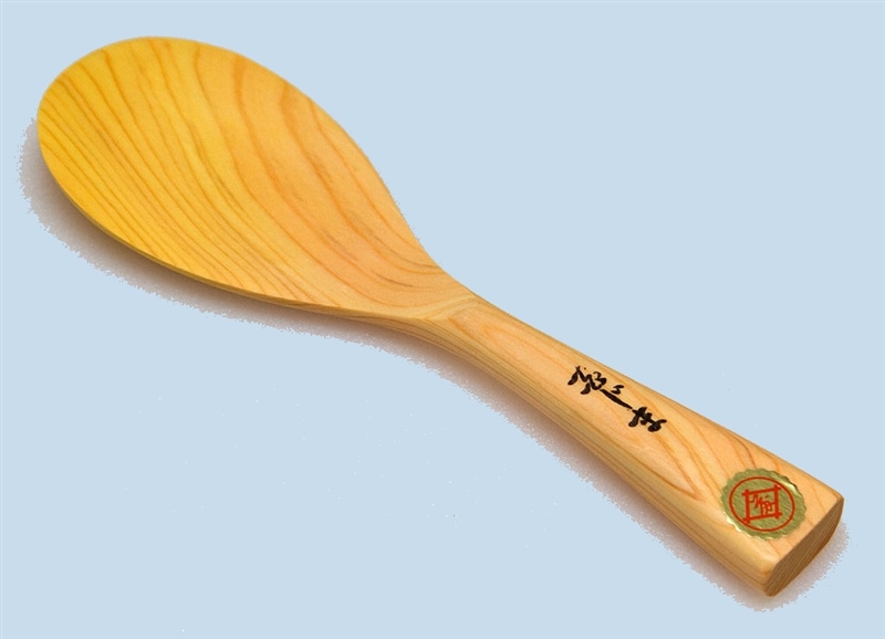 ShamojiDeze platte, afgeronde lepel wordt gebruikt om de sushirijst tijdens het afkoelen om te scheppen en uit te spreiden |