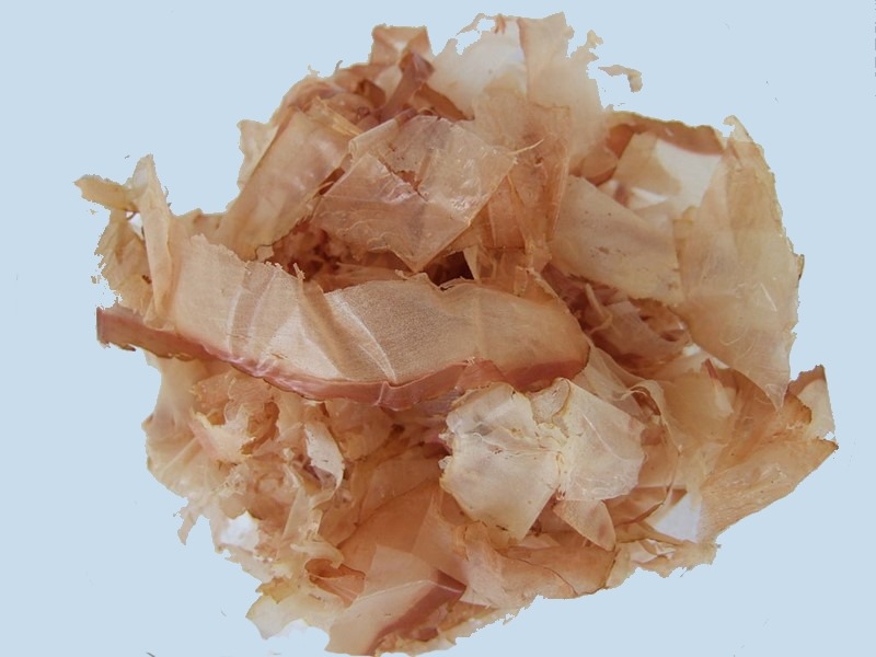 Katsuo-bushi(bonitovlokken).Bonitovlokken zijn de schaafsels van een gedroogde, gefermenteerde en gerookte tonijnsoort, namelijk de gestreepte tonijn. Katsuo-bushi en gedroogde kelp zijn de hoofdingrediënten van dashi. Dashi is een Japanse bouillon, die de basis is voor veel soepen en sauzen Prijs-indicatie