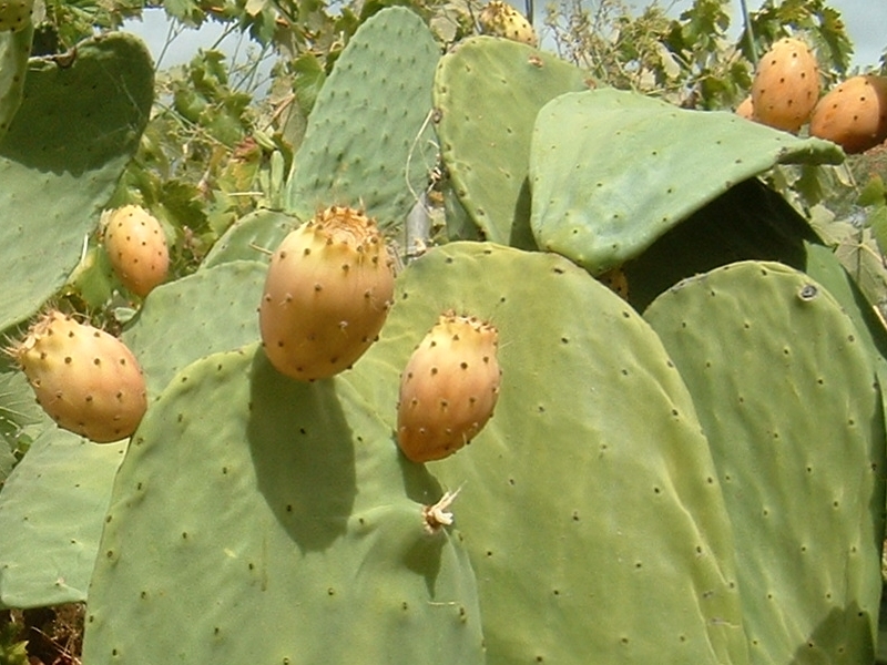De stekels van de cactusvijgen prikken heel erg en kun je beter niet met de blote hand aanraken.