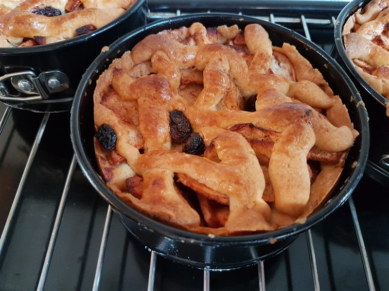 Schep het appelmengsel in de vorm en druk dit aan.