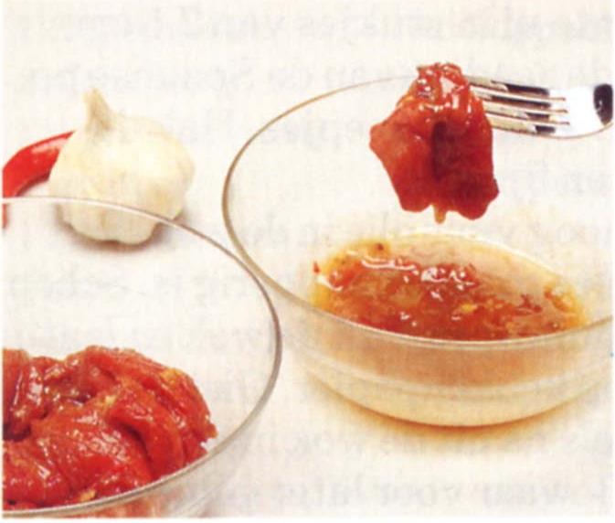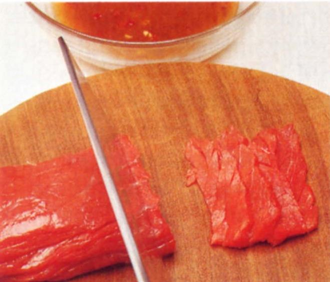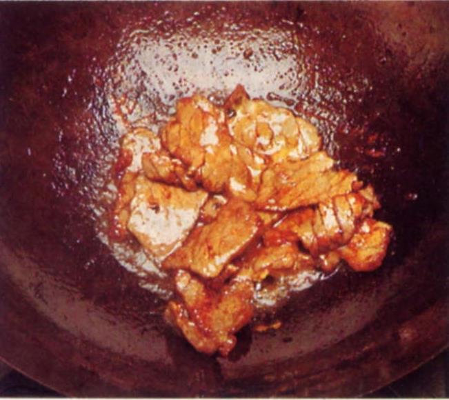 Haal het vlees uit de marinade en laat uitlekken. Verhit op een hoog vuur de wok, verhit vervolgens 1 eetlepel olie, roerbak het vlees tot het verkleurt. Haal uit de wok en zet apart.