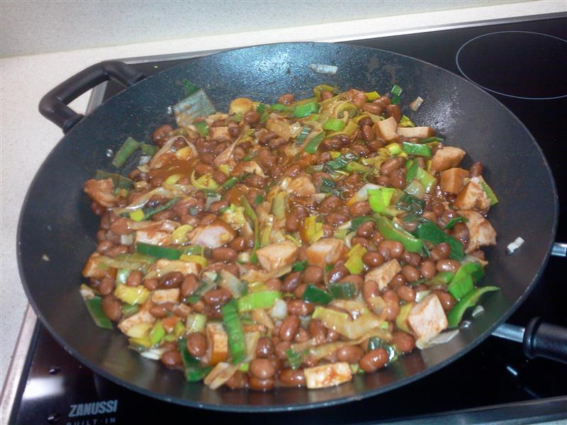 bonen, groente, gevogelte, saus |