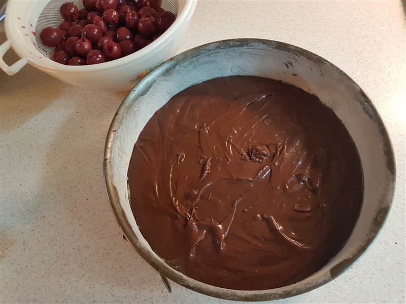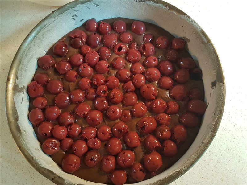 kersen over het chocoladebeslag.