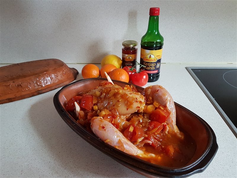 Saus met tomaten, ui, ketjap en sinaasappelsap