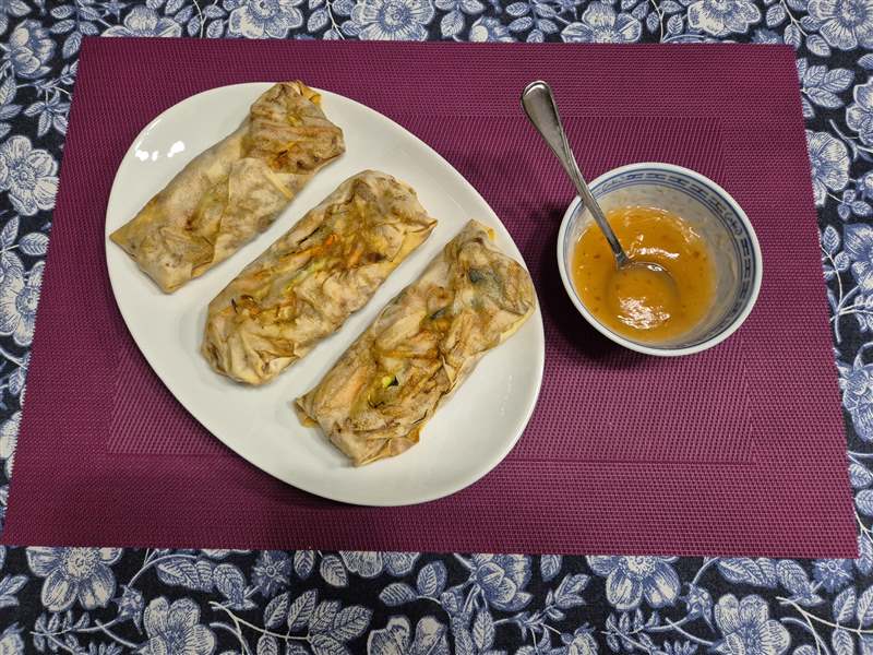 Besproei de loempia's voor het bakken met een beetje olie.