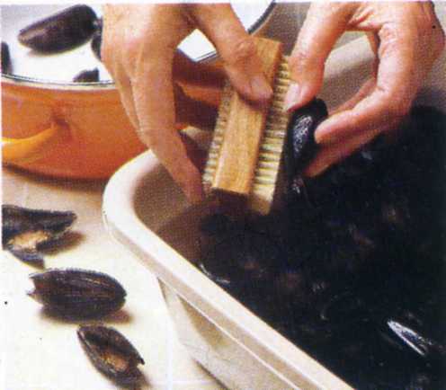 Doop de mossel in een sausje van 1 eetlepel mosterd,