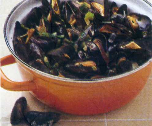 Mosselen serveren met warm stokbrood of Vlaamse frites.