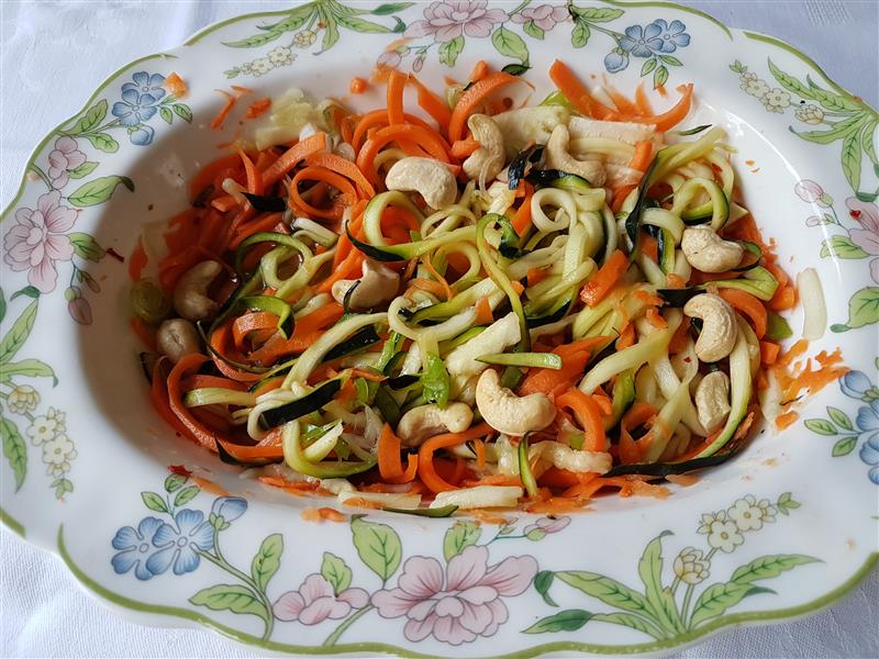 spiralen van met de spiraalsnijder en doe de slierten in een