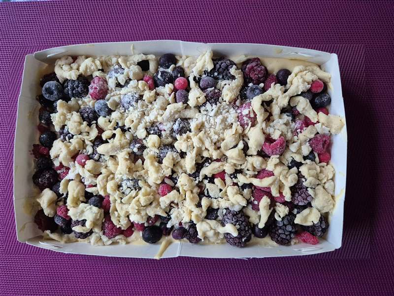 met grove kruimels van de rest van het kruimeldeeg.