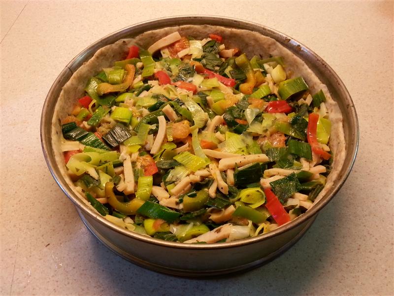 Je kunt de taart bereiden zonder vlees of een vleesvervanger gebruiken.