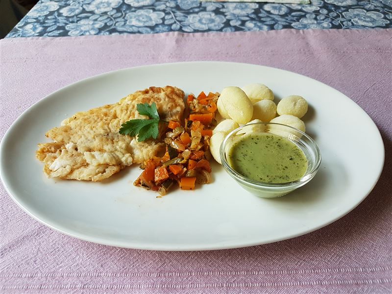 door. Haal de filets licht door de gekruide bloem.