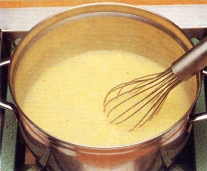 één pan 5 dl bouillon, en de maïs. Breng al roerend aan