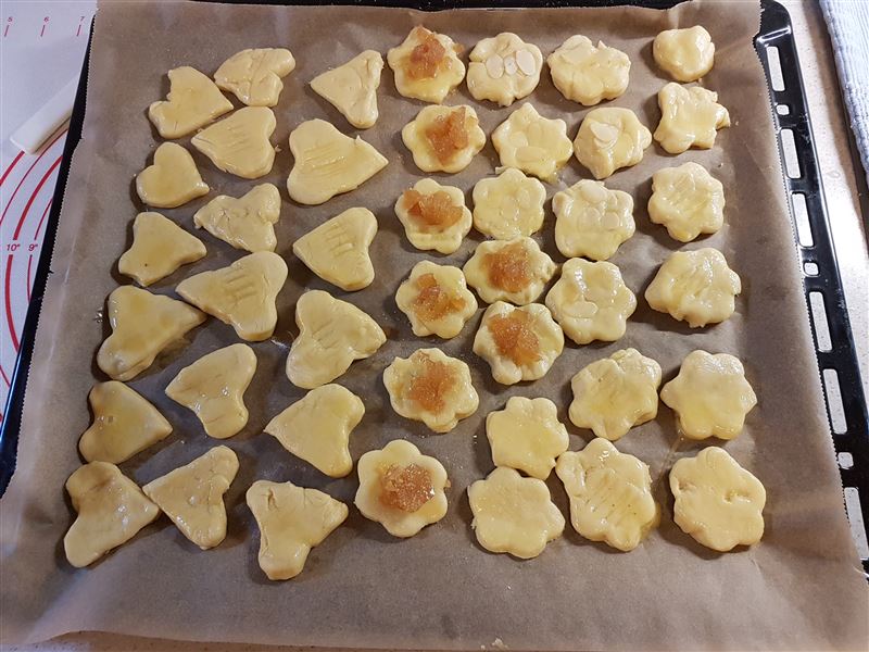 Bestrijk de koekjes met de rest van het opgeklopt ei.