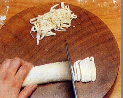 onder het deeg een vel zijdepapier legt, zie je nadat de mie gesneden ís, geen