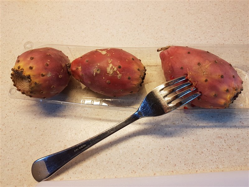 De stekels van de cactusvijgen prikken heel erg en kun je beter niet met de blote hand aanraken.