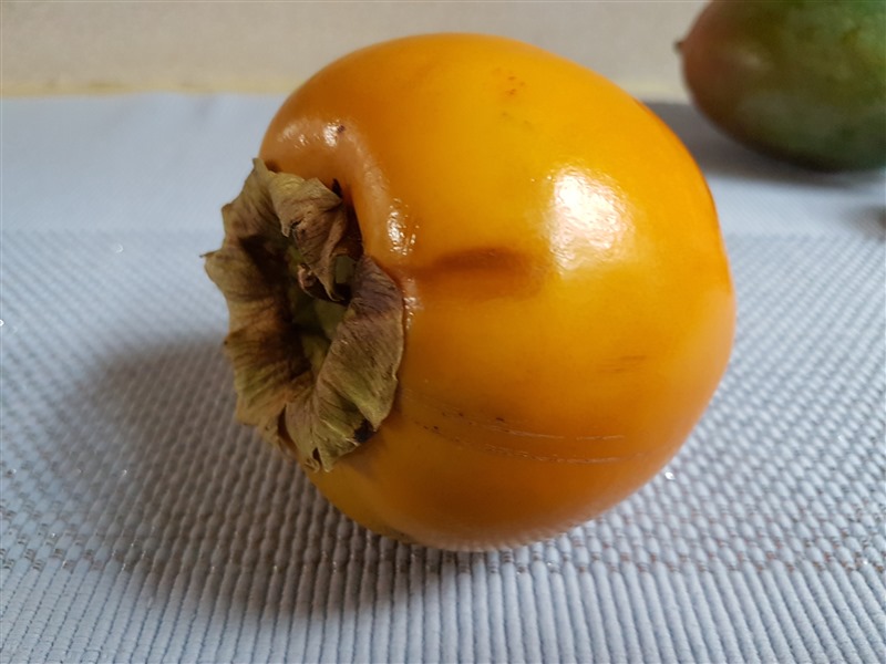 Een rijpe kaki is oranjerood van kleur en verspreidt een heerlijke geur. De vrucht lijkt qua vorm een beetje op een tomaat.