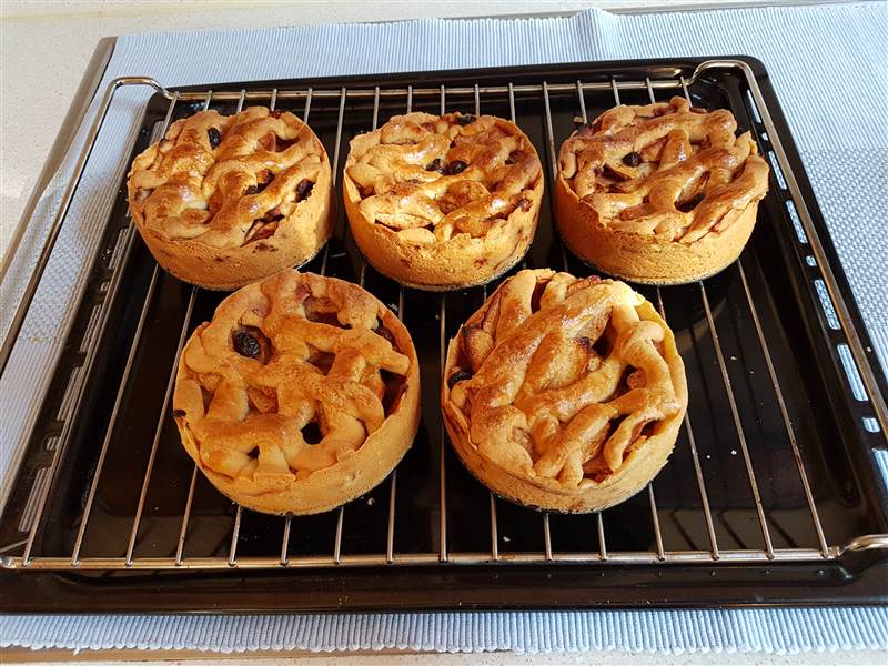 Zet de vorm op het rooster en bak de taart in 60- 75 minuten gaar en
