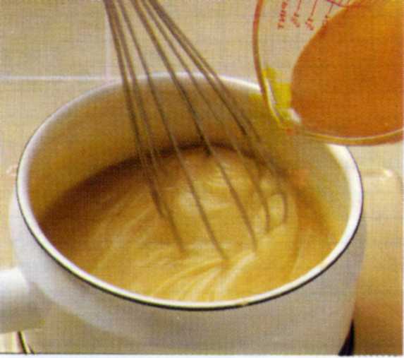 melk maar fond of bouillon gebruikt. Dit kan runder-, kippen- of visbouillon zijn.