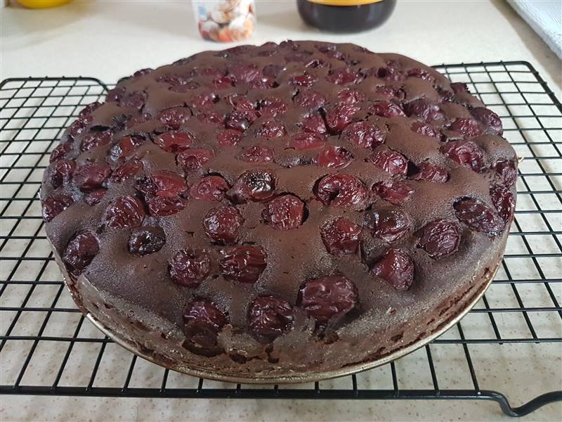 kersen over het chocoladebeslag.