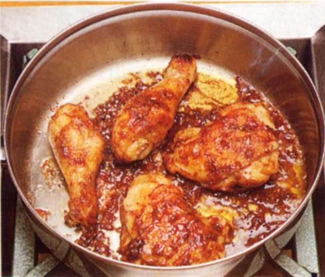 Dep de kip droog met keukenpapier. Verhit olie in een pan met deksel en bak de kip op niet te hoog vuur aan beiden zijden bruin.