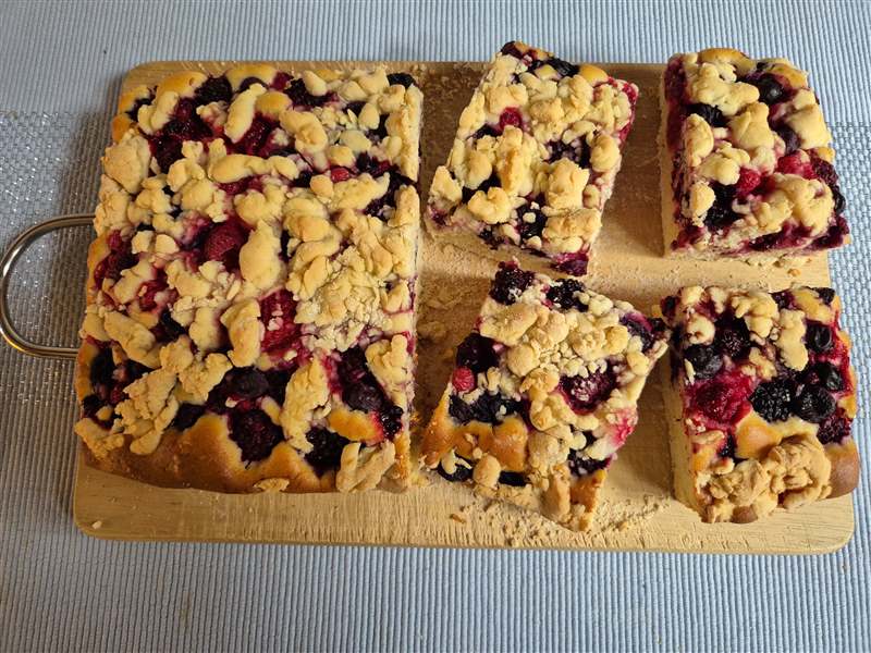 met grove kruimels van de rest van het kruimeldeeg.