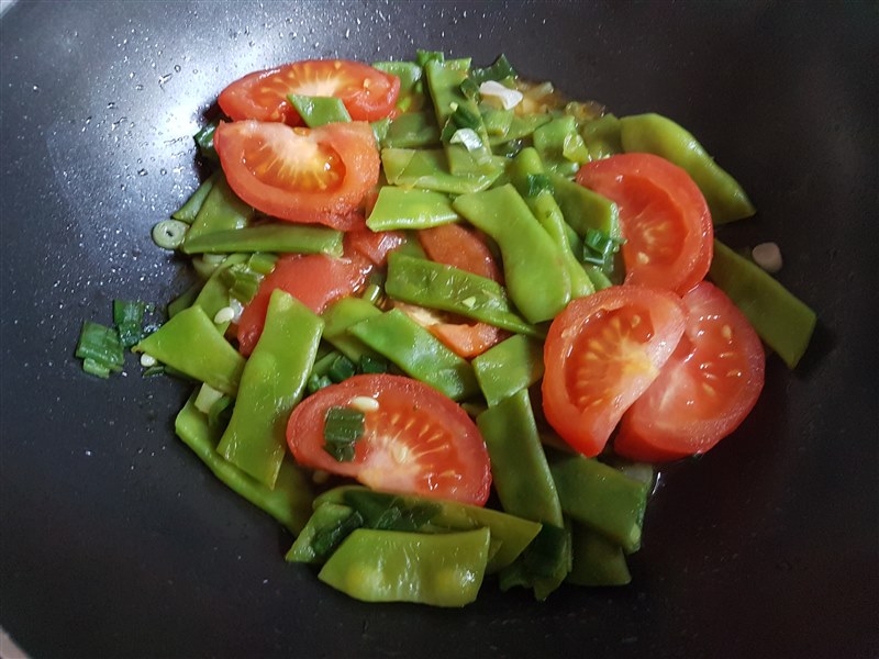 roerbak 1 minuut. Voeg de tomaat er bij en wok kort mee.