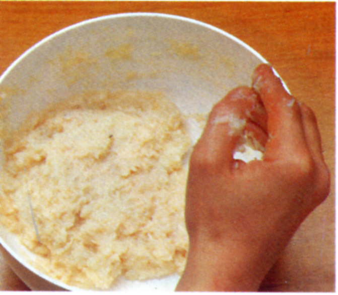 lucht uit de massa. Herhaal dit tot de massa stevig is en rol er