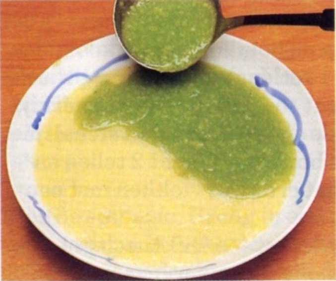 Roer er zoveel van het bindpapje door tot de soep bindt