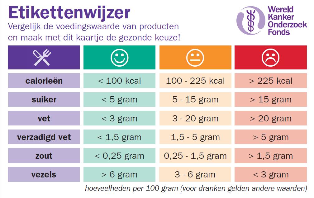 Bron: Etikettenwijzer van het Wereld Kanker Onderzoekfonds